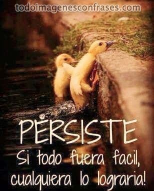 En la vida una de las cosas más importantes es la persistencia y perseverancia, porque no todo es fácil, a veces las cosas se complican y hay que seguir luchando para que las cosas nos salgan bien. En la siguiente imagen van a ver a dos patitos que no pueden subir y la frase: "Persiste, si todo fuera fácil, cualquiera lo lograría!".