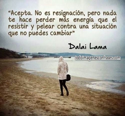 Acepta. No es resignación, pero nada te hace perder más energía que el resistir y pelear contra una situación que no puedes cambiar - Dalai Lama.