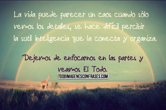La vida puede parecer un caos cuando solo vemos los detalles, se hace difícil percibir la sutil inteligencia que la conecta y organiza. Dejemos de enfocarnos en las partes y veamos EL TODO.