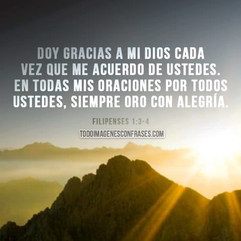 Doy gracias a mi Dios cada vez que me acuerdo de ustedes. En todas mis oraciones por todos ustedes, siempre oro con alegría.