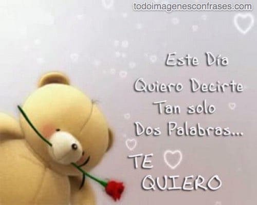 Hay personas que les es fácil demostrar los sentimientos y que en todo momento están diciéndole a las personas lo que sienten por ellas. Puede ser un te quiero a un familiar, un te amo a la pareja, o lo que sea, pero lo importante es demostrar lo que uno siente, porque va a llegar un día en el que no tengamos esa posibilidad y nos vamos a arrepentir toda la vida. Otras personas por ahí son más vergonzosas y les cuesta hacerlo, pero hoy les vamos a dejar esta hermosa imagen para los que sí les gusta decir te quiero a los demás. Como pueden ver, en la imagen hay un tierno osito sosteniendo una rosa con la boca y una frase que dice lo siguiente: Este día quiero decirte tan solo dos palabras... TE QUIERO. Creo que es una muy buena oportunidad para que descarguen la imagen y se la envíen a las personas que crean que vale la pena enviársel. Pueden descargarla y subirla a facebook o sino pueden enviarla por whatsapp.